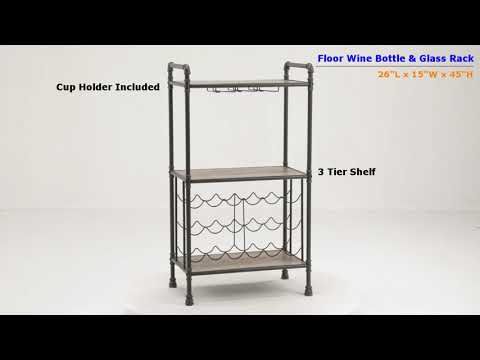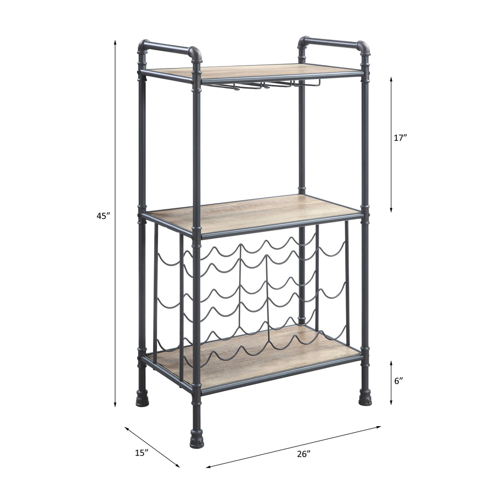 The Brantley Bar Cabinet by Acme Furniture features a metal frame, wooden shelves, a rack for glasses and wine bottles,... The Brantley Bar Cabinet by Acme Furniture features a metal frame, wooden shelves, a rack for glasses and wine bottles, and a grey finish. View more