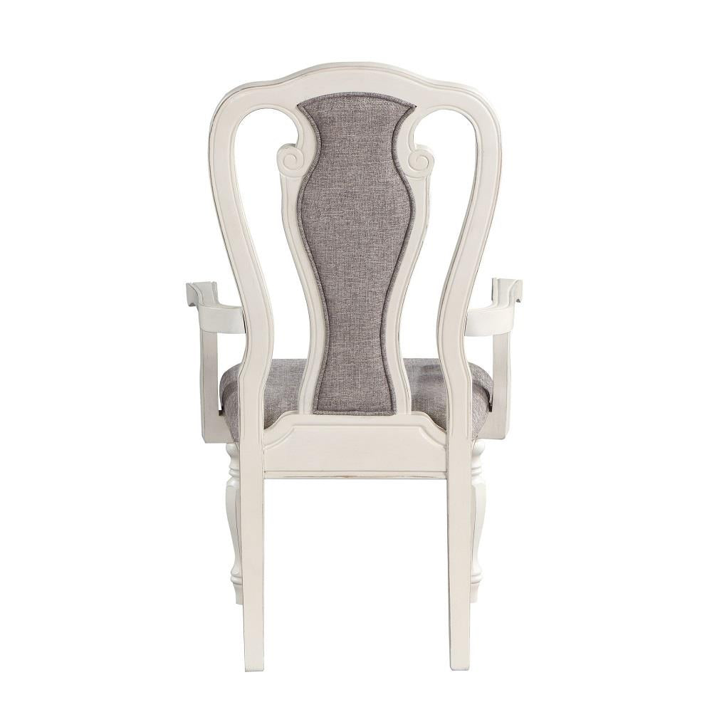 Grey Fabric & Antique White Finish