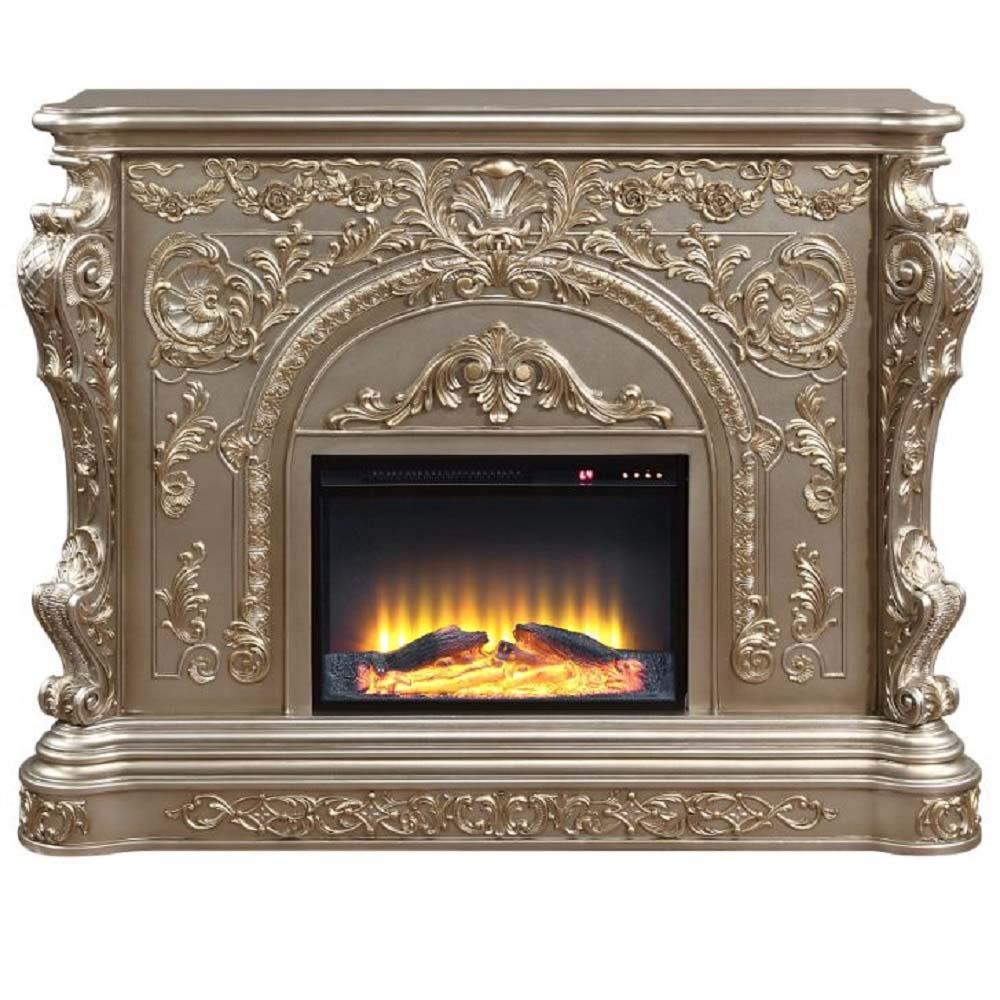 LED Electric Fireplace Wooden Frame Scrolled Floral Touch Panel/Remote Controller (Batteries Required 2pc x AAA) Functions: Adjustable Temperature, Timer, Light Only