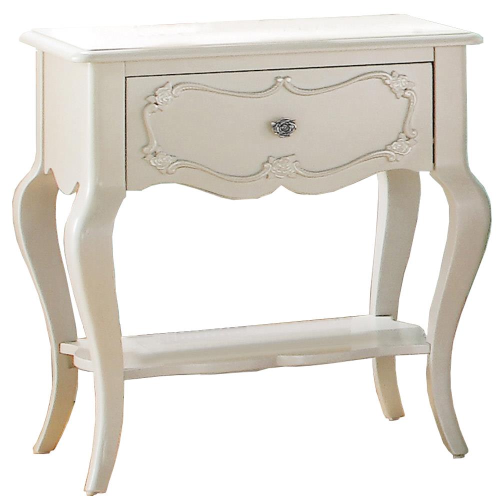 • Drawer: Front w/Scrolled & Rose Inlay Detail, GLIDE Side Wood (3/4 Ext.), Dovetail English, Lined Floral Paper, Hdw: Nickel Rose Metal