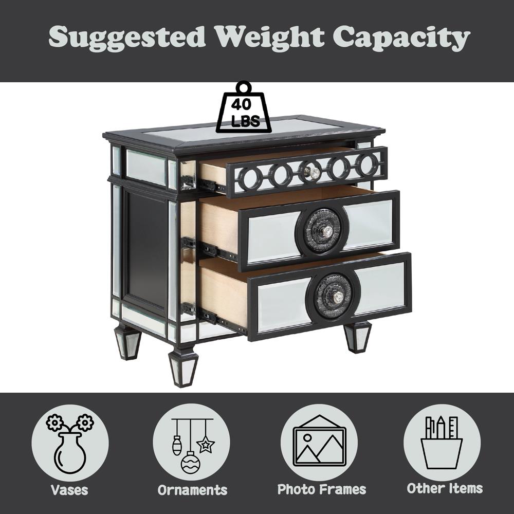 • Mirrored Top, Raised Geometric Trim, Sunburst Motifs