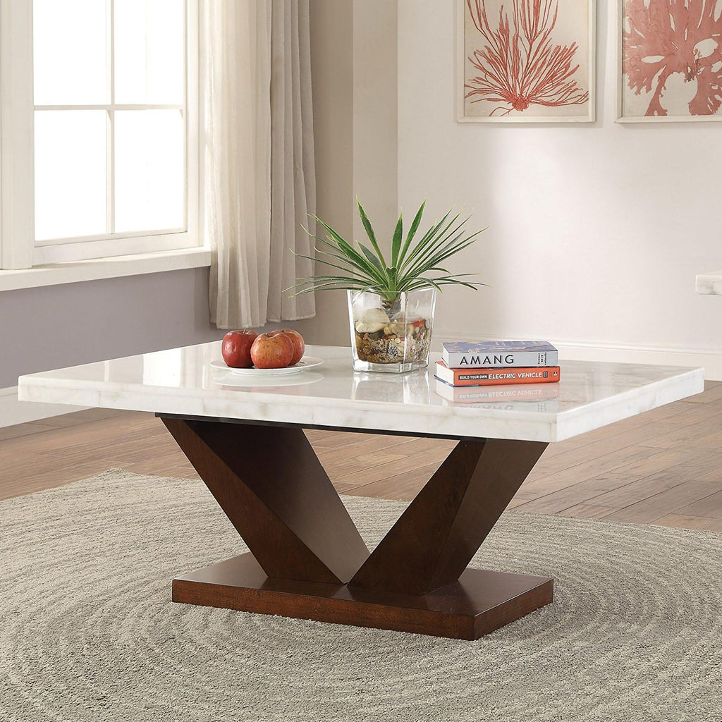 White Natural Marble Top & Walnut Finish