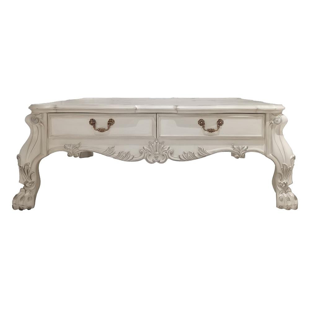Exclusive DesignStorage: 2 Drawers (Coffee Table Only)Wooden Scalloped Top & Apron with Raised Floral MotifsOversized Claw Legs