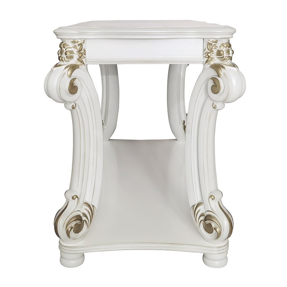 • KD, Rectangular Table w/Scrolled Leg and Bottom Shelf