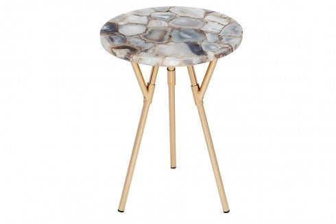 Gold Metal Base Grey Natural Agate Stone Top 16" Dia. x 21" H 13-1028 *Natural Agate stone colour and size... Gold Metal Base Grey Natural Agate Stone Top 16" Dia. x 21" H 13-1028 *Natural Agate stone colour and size may vary View more