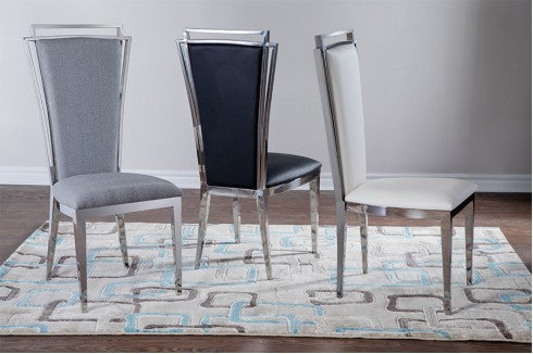 Silver Stainless Steel Frame Grey Bouclé Fabric, Black Leatherette or White Leatherette. 20" x 23" x 43.5" H Seat Height:... Silver Stainless Steel Frame Grey Bouclé Fabric, Black Leatherette or White Leatherette. 20" x 23" x 43.5" H Seat Height: 18.5" 53-014 View more