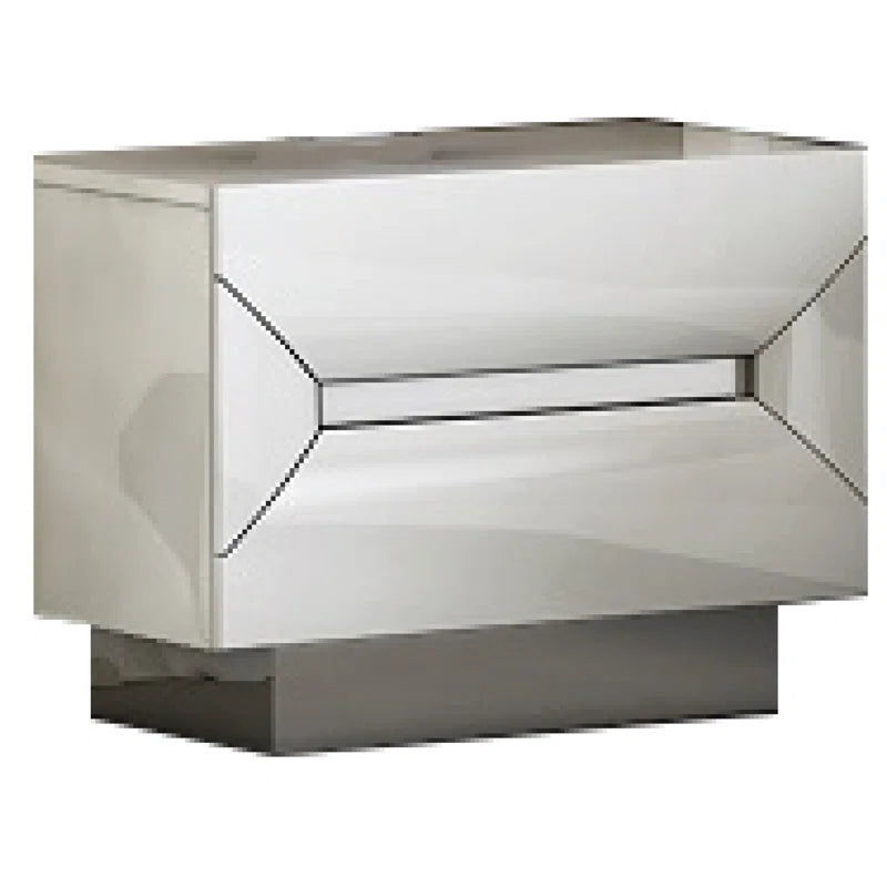 Upgrade your bedroom with this modern and minimalist 5-piece bedroom set, available in sleek matte black or crisp matte white... Upgrade your bedroom with this modern and minimalist 5-piece bedroom set, available in sleek matte black or crisp matte white finishes. Featuring clean blocky lines and a luxurious PU headboard, this set exudes contemporary elegance while providing functional storage solutions. The mirror-accented bases reflect light, enhancing the sense of space and sophistication. Designed for both style and practicality, the set includes a king or queen bed, dresser, mirror, nightstand, and chest, making it a perfect fit for modern interiors. With sturdy construction and ample storage drawers, this bedroom set offers durability, elegance, and a clutter-free living space. 1.Available in Matte Black or Matte White2.PU Headboard3.Sturdy Construction4.Spacious Storage5.Mirror Accents View more