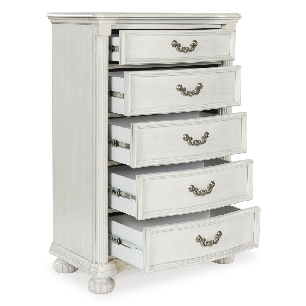 • Drawers with French/English dovetail construction and heavy-duty ball-bearing side glides (top drawer felt lined)