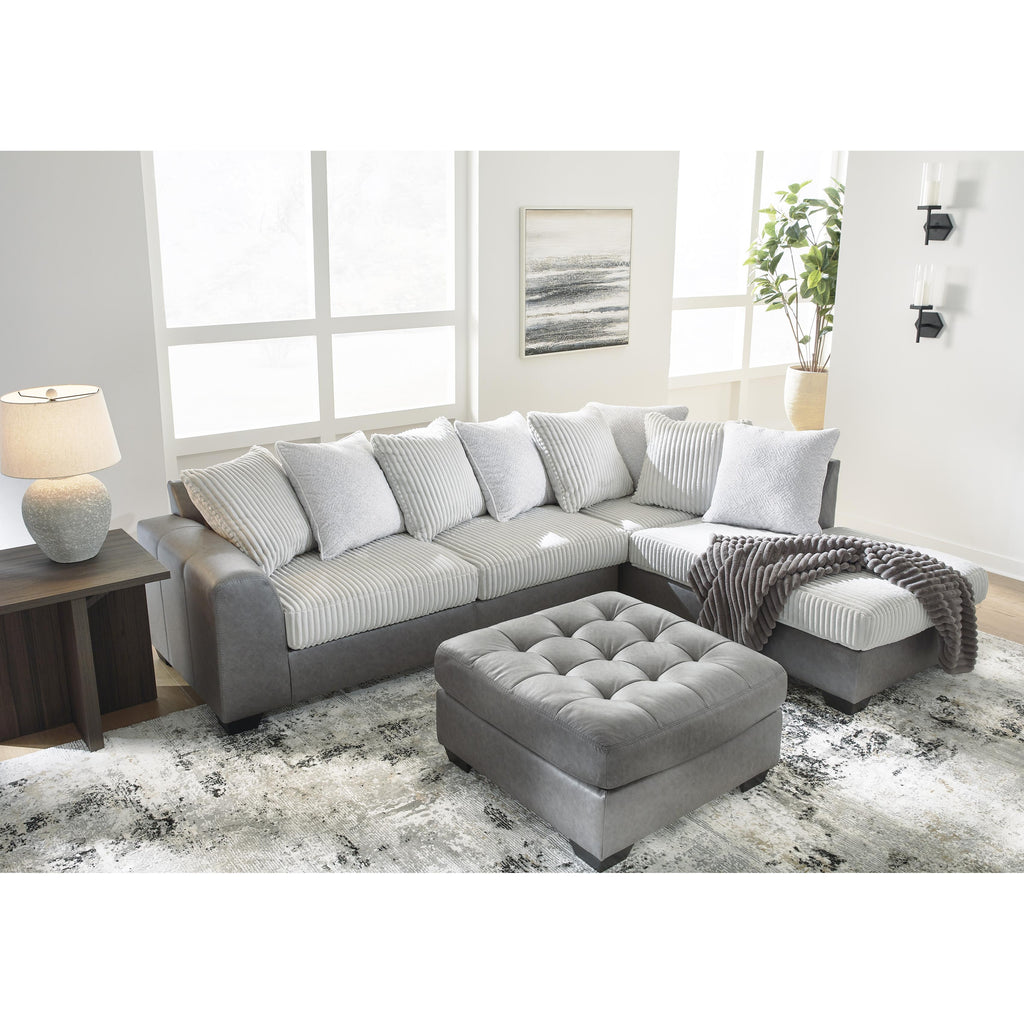 Calgary Furniture Emporium Clairette Court Fabric and Leather Look 2 pc Sectional 3150366/3150317