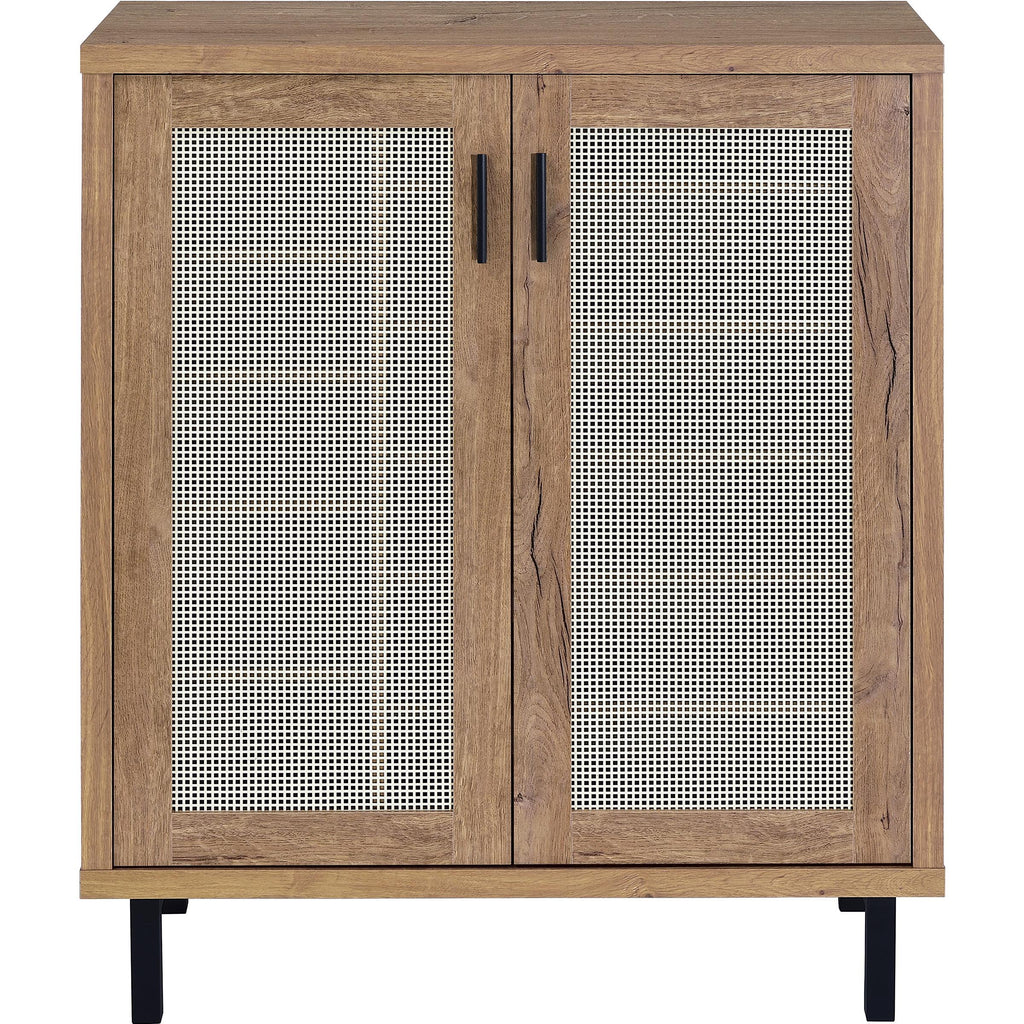 • Airy metal cane-style door panels for ventilation and visual interest