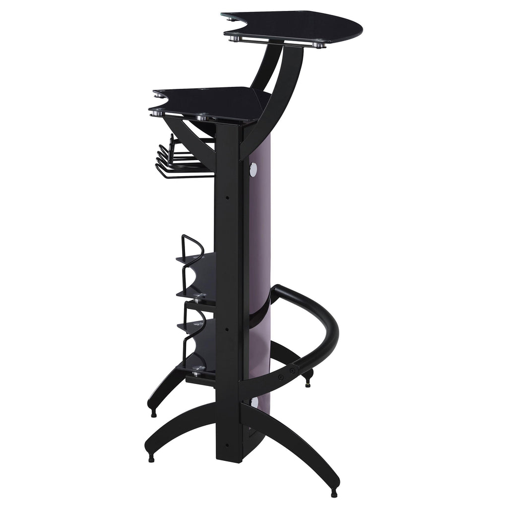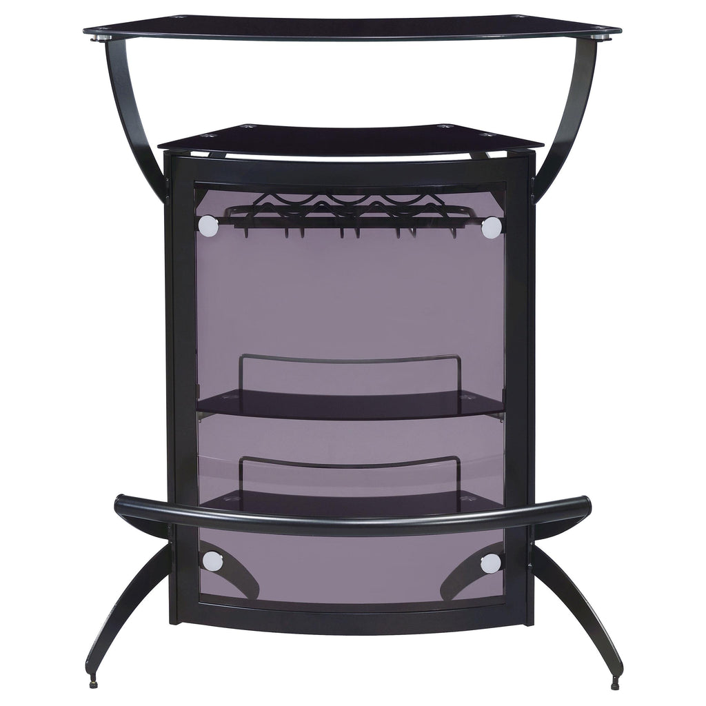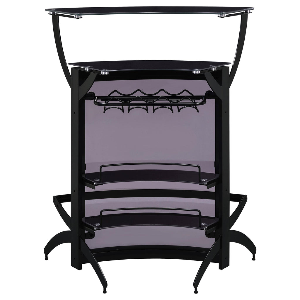 • Contemporary bar unit showcases a curved modern design with metal frame in black finish