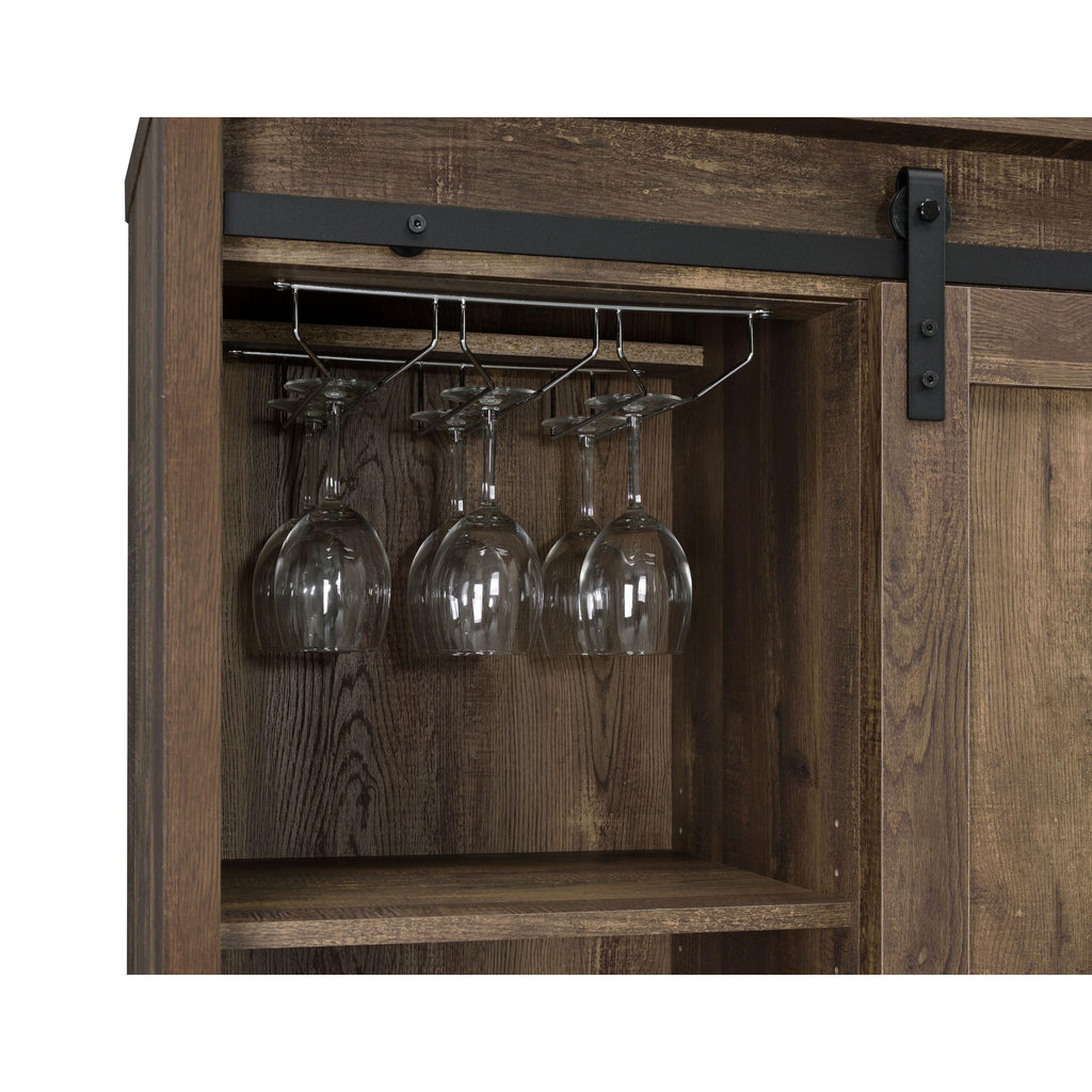 • Rustic farmhouse bar cabinet with sliding barn door