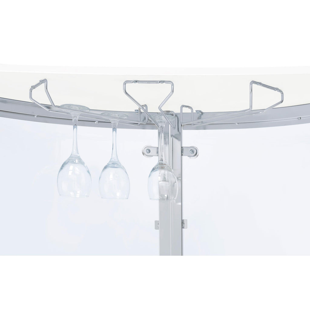 • Contemporary white bar unit with a curved metal frame in a trendy chrome finish