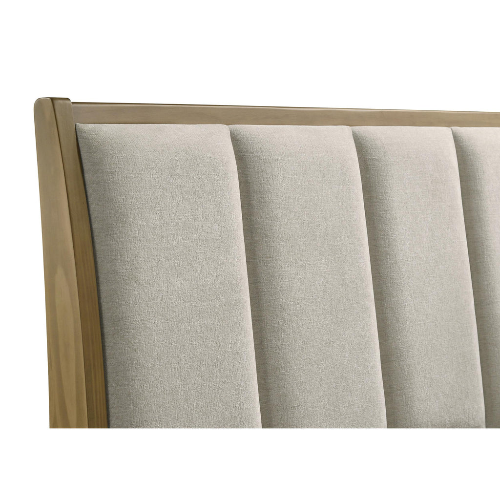 • Transitional queen panel bed with a vertical channeled upholstered headboard