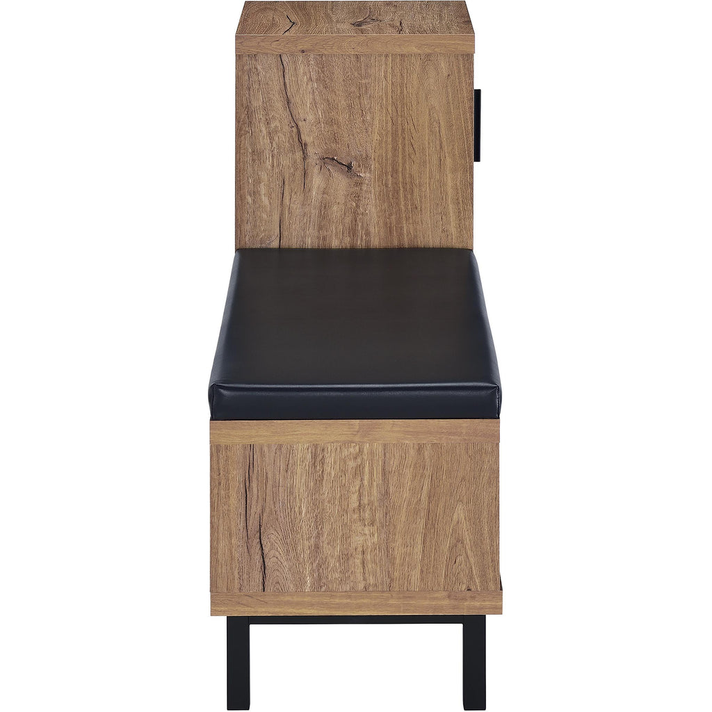 • A multifunctional shoe storage bench in natural oak finish with integrated seating