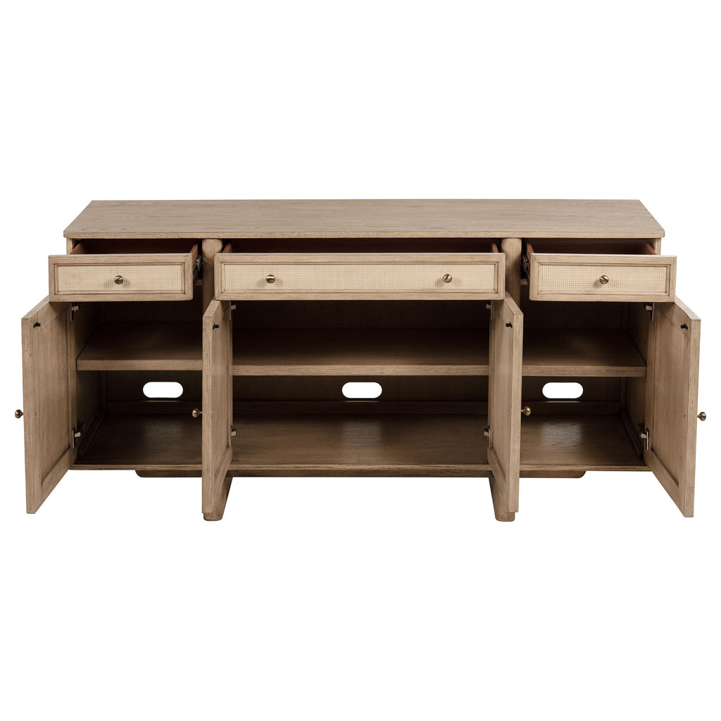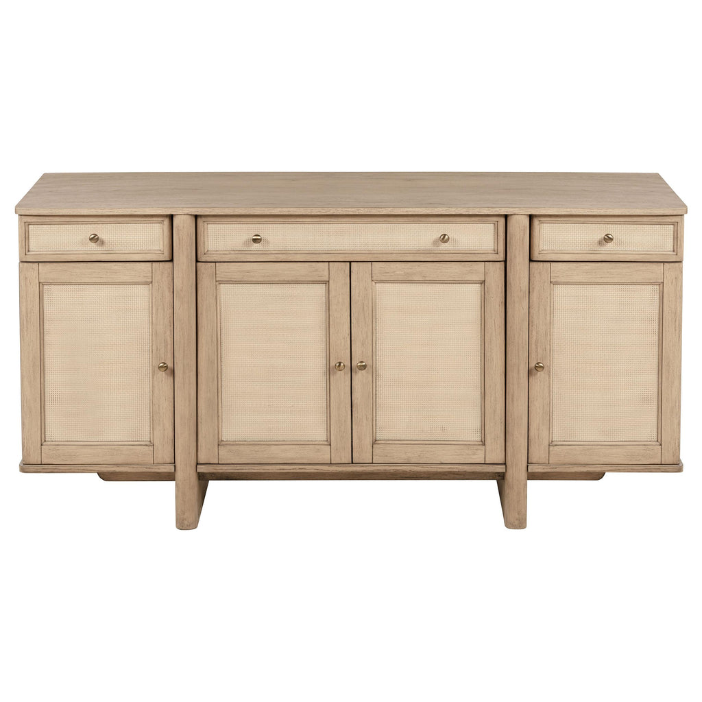 • Sideboard in beige oak finish with three drawers and a four-door cabinet for ample storage
