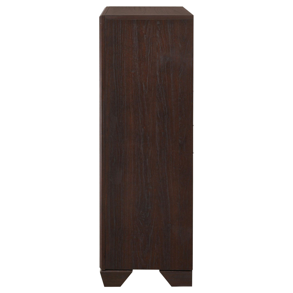 • Dark cocoa finished chest with a simple, square silhouette