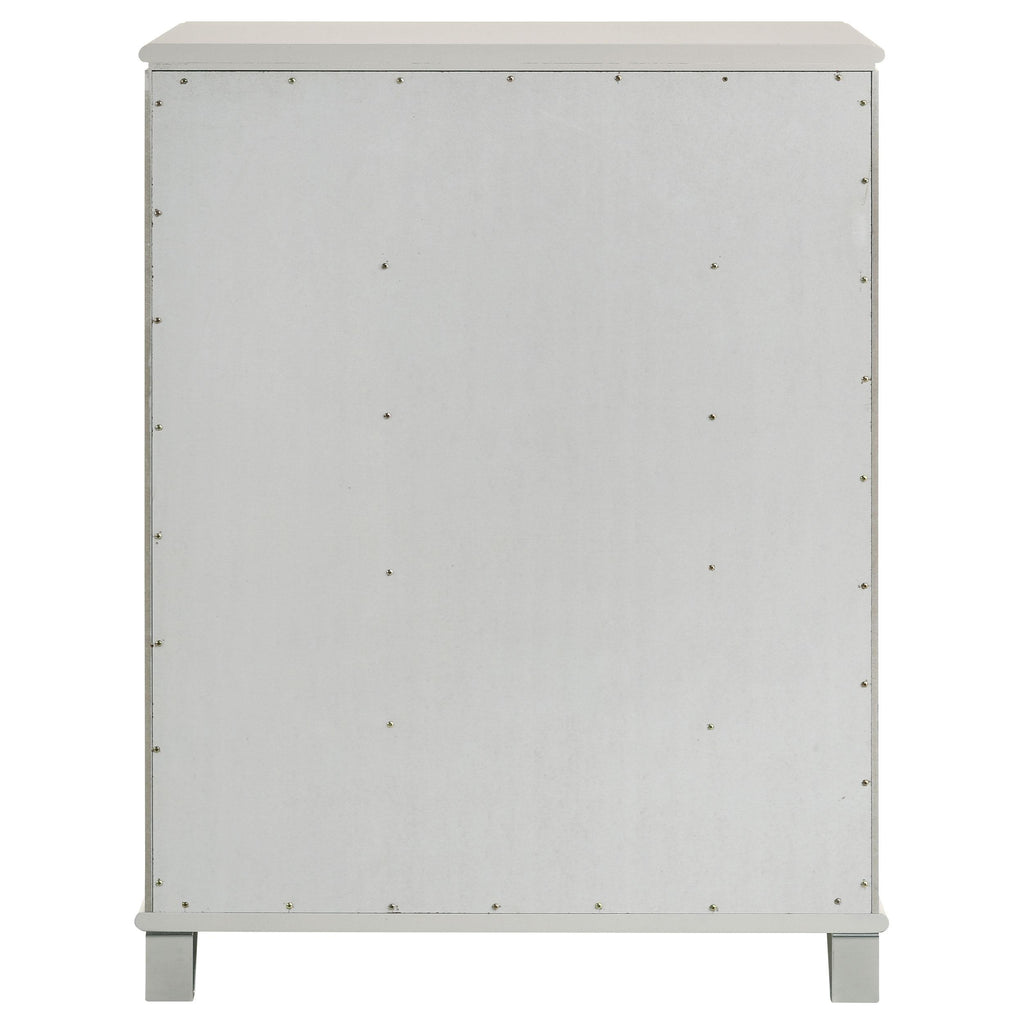 • Elegant 5-drawer chest in pearl white finish