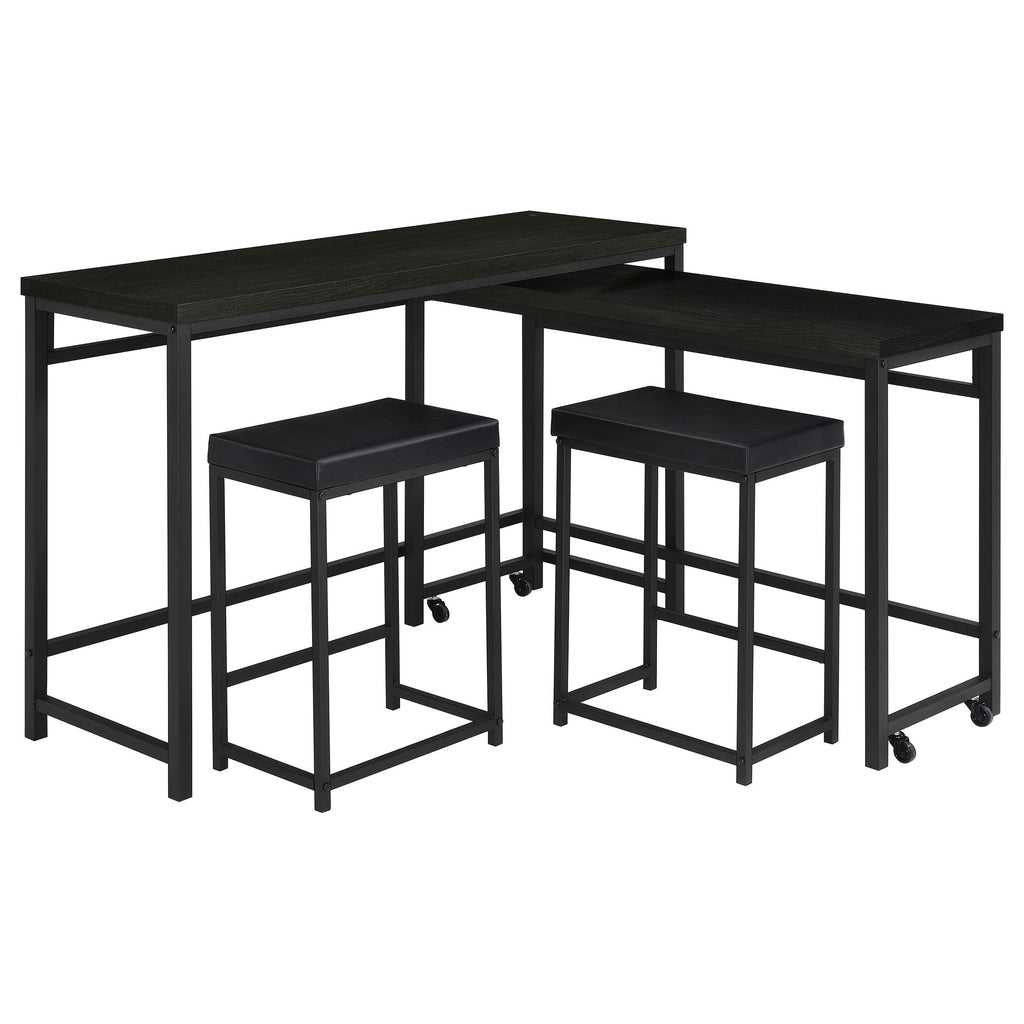 • A modern four-piece counter height set with two tables and two stools is perfect for multi-functional spaces