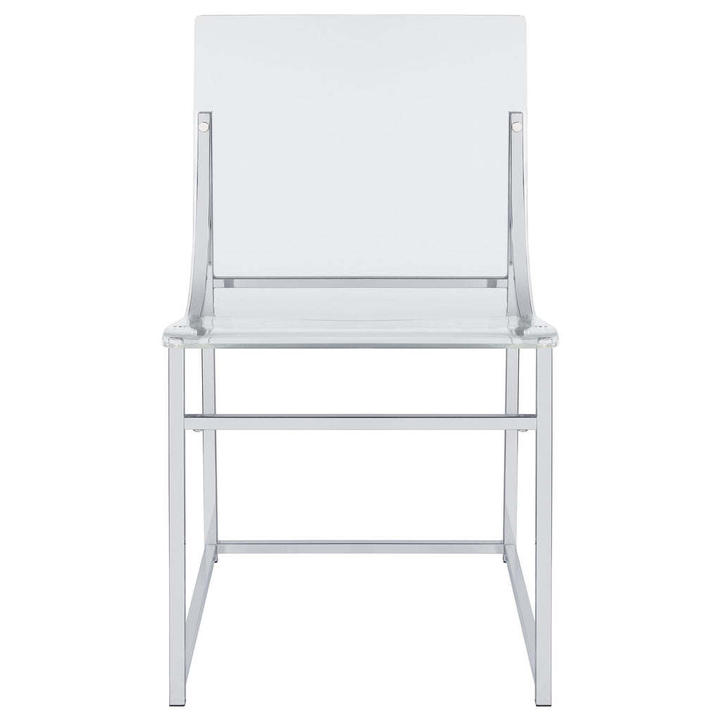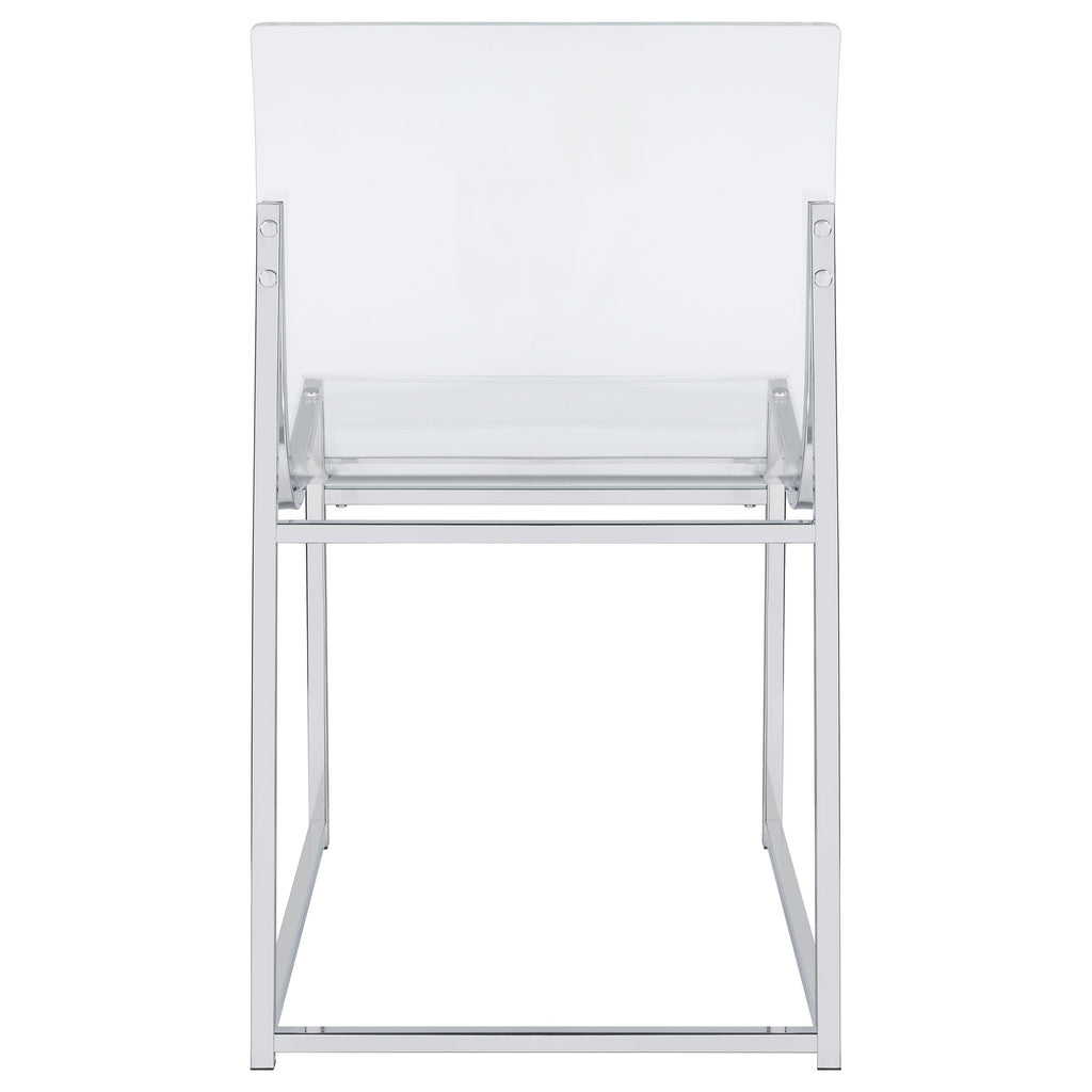 • Clear acrylic and graceful curves create a comfortable, minimalist seat and back
