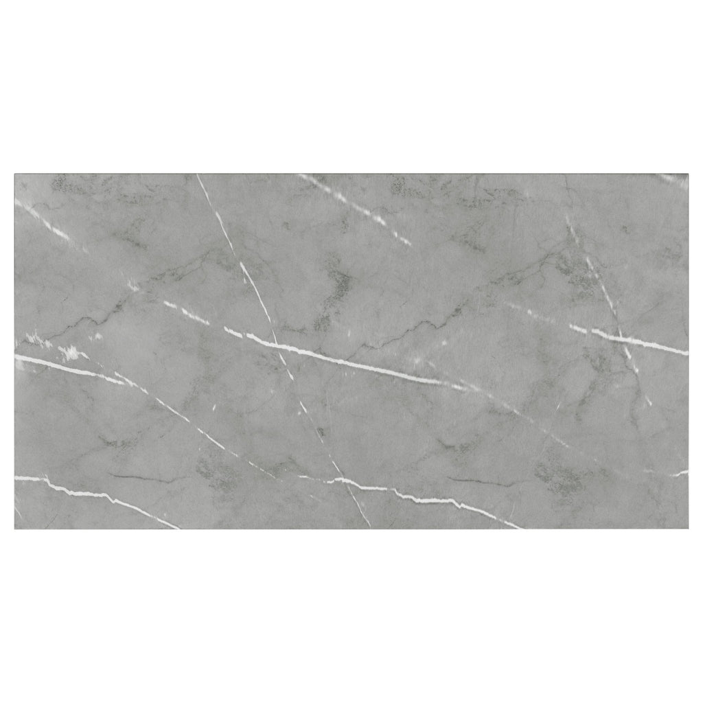 • Grey faux marble laminate tabletop with engineered wood substrate