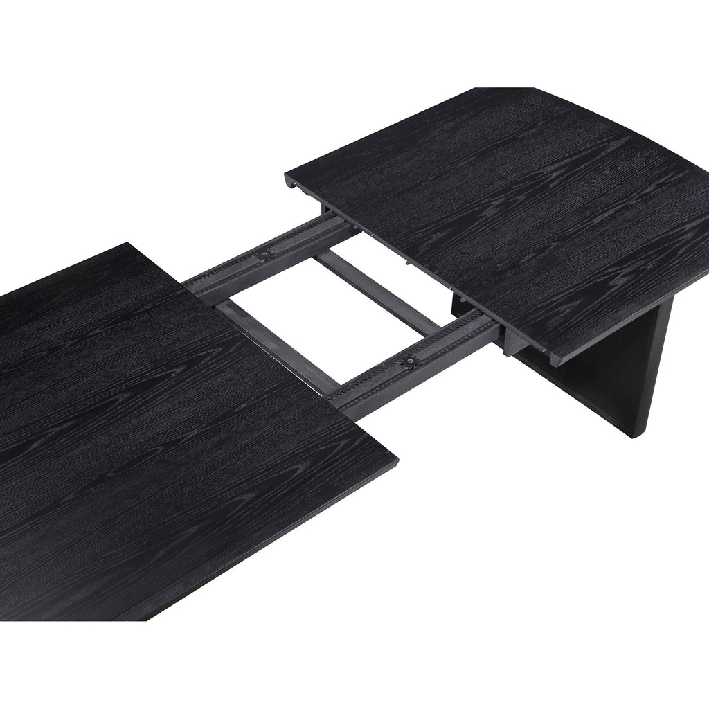 • Contemporary style incorporates linear silhouettes in this dining table with a slightly curved chamfered top