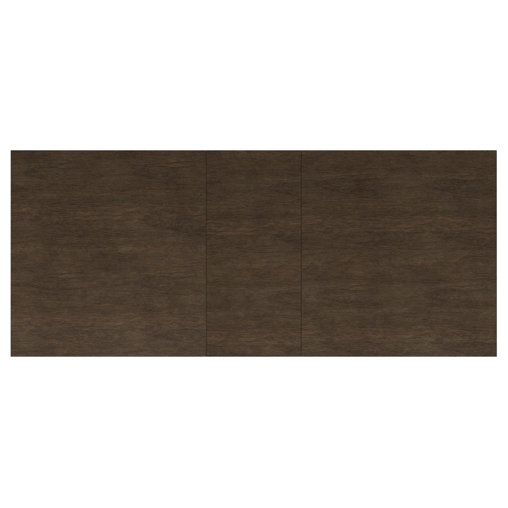 • A rectangular dining table creates inviting ambiance with stylish wood grain and understated design