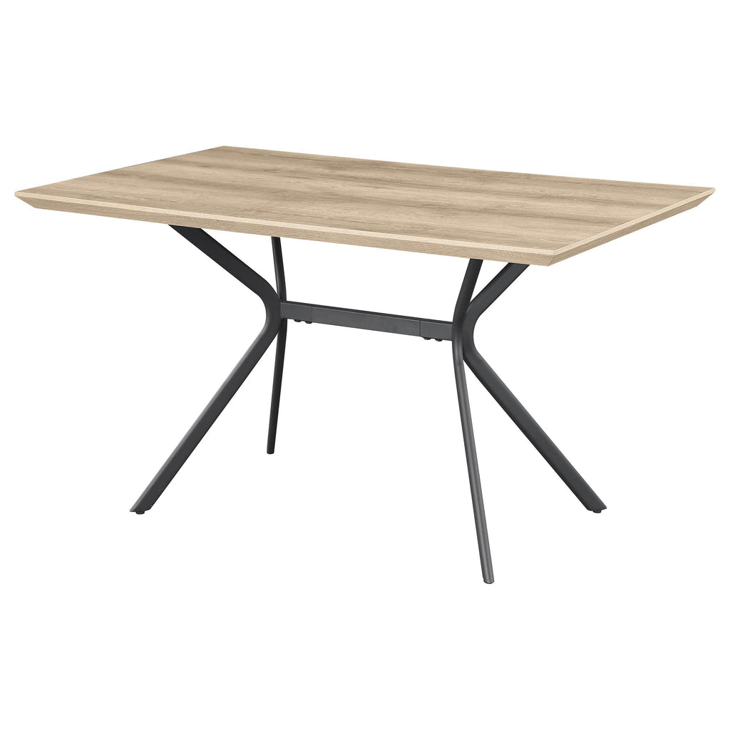 • Angular details create a fresh perspective for a casual contemporary rectangular dining table