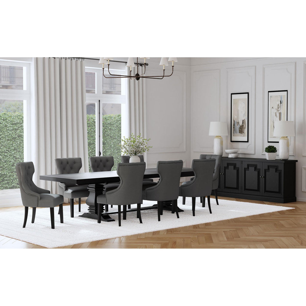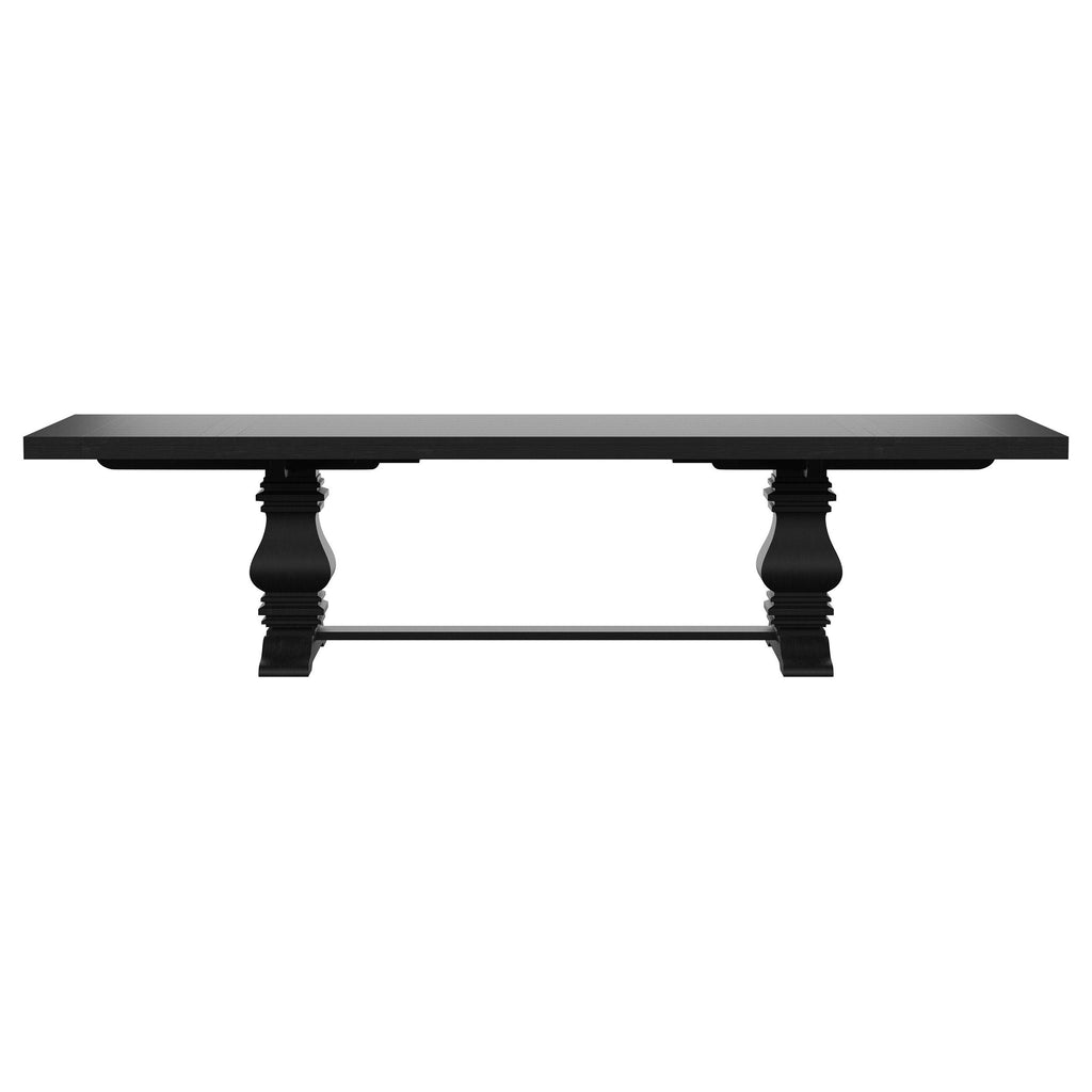 • Double pedestal base with a trestle is bold and timeless, offering impeccable support and stability