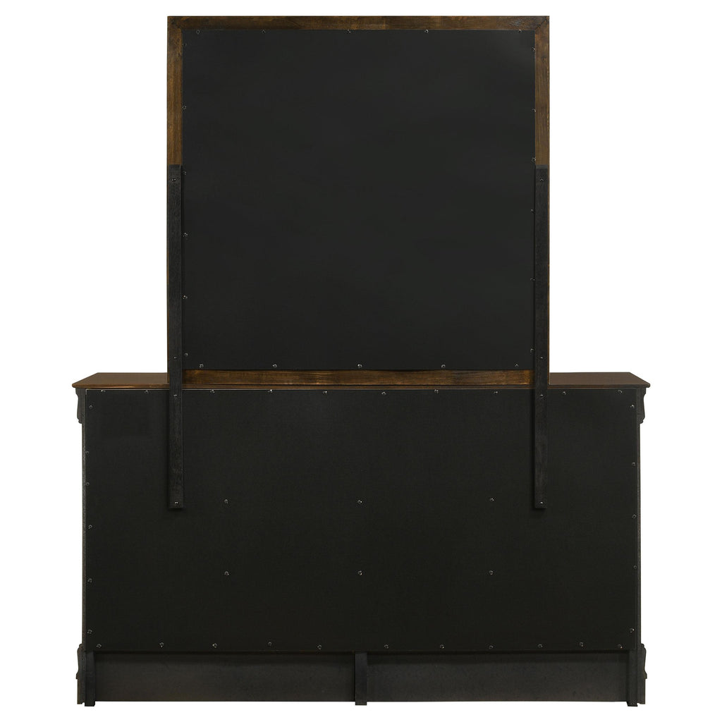 • Six-drawer dresser with elongated details in warm cappuccino finish