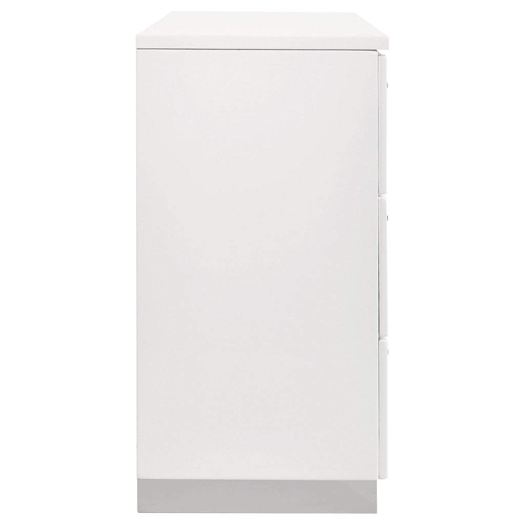 • Polished chrome metal bar pull handles add minimalistic appeal