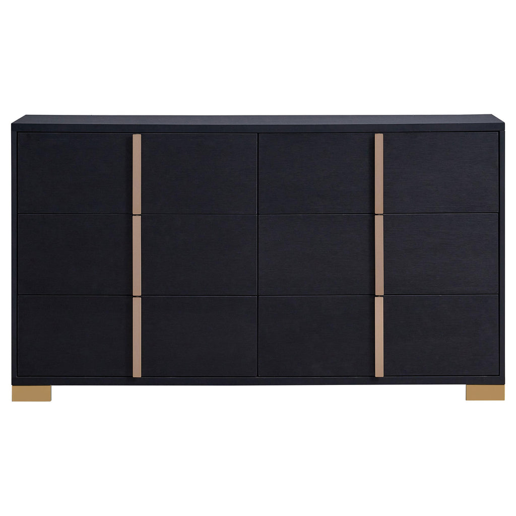 • Sleek and simple six-drawer dresser with dramatic aesthetic to change tone of contemporary bedroom