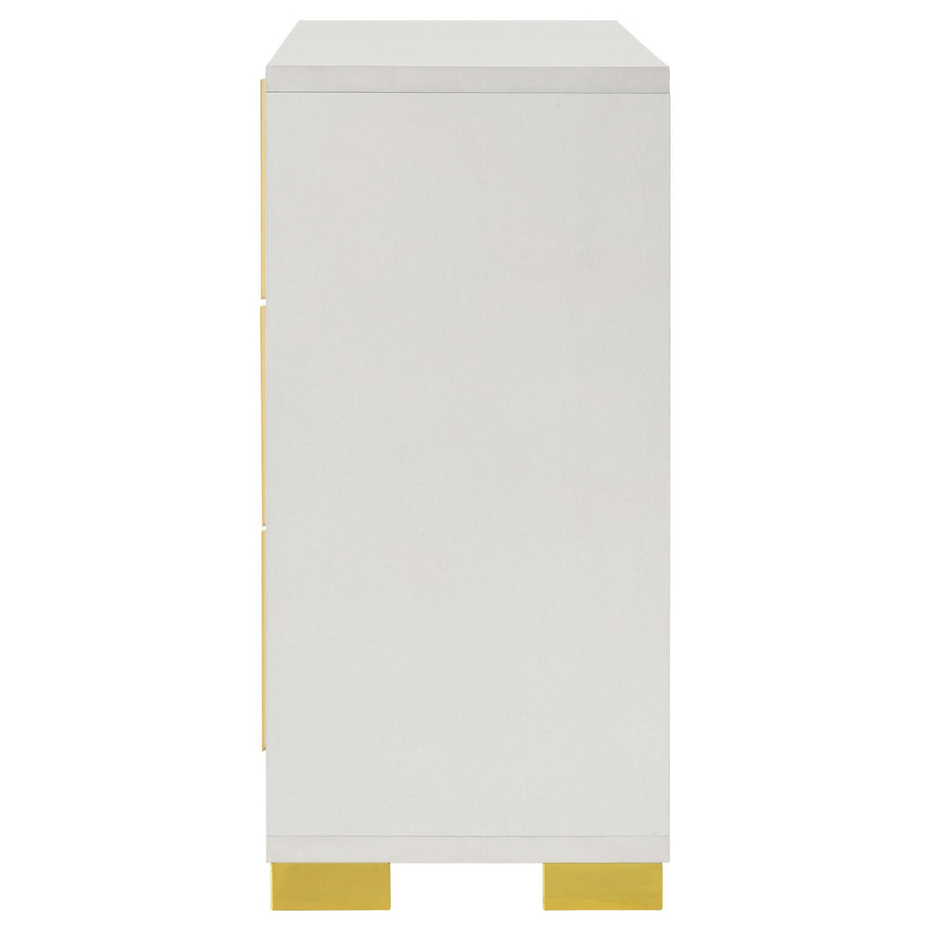 • Vertical gold metal drawer hardware for unique impact