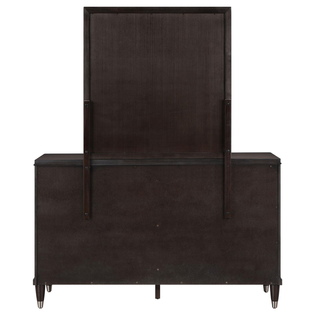 • Modern six-drawer dresser includes a mirror and offers ample storage in your bedroom