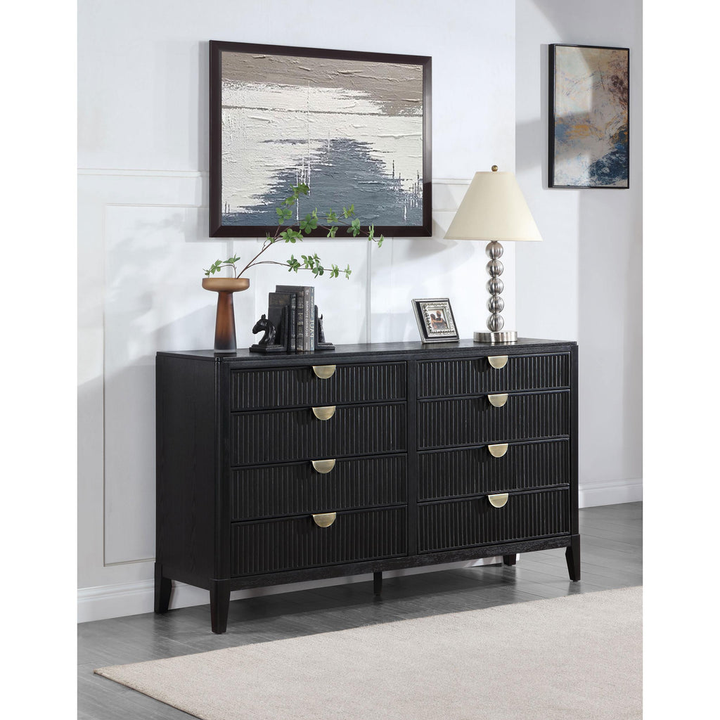 • Fluted texturing highlights eight drawer fronts to provide sophisticated dimensionality