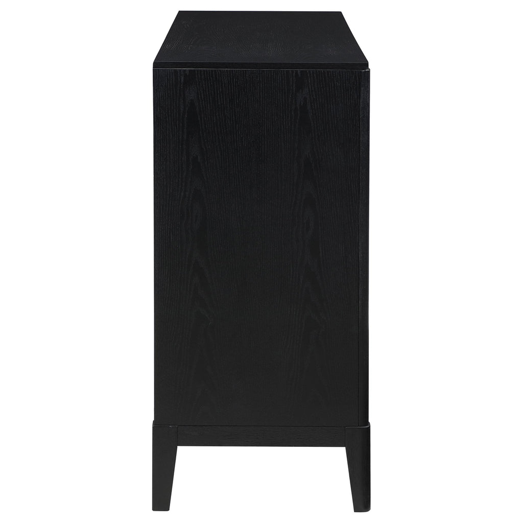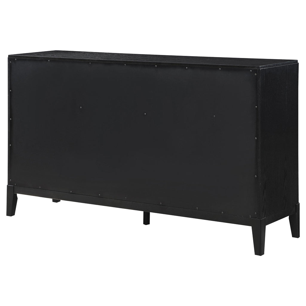 • Stylish and modern, a contemporary wood dresser features a wire brushed black finish