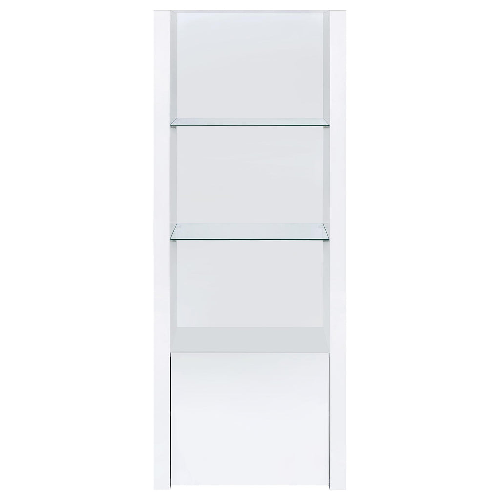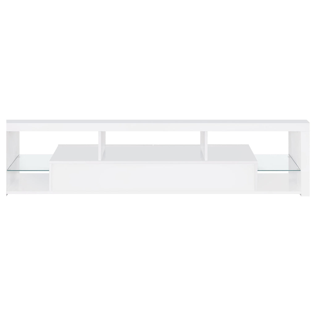 • Sleek, modern design with pristine glossy white-on-white finish and clear glass details