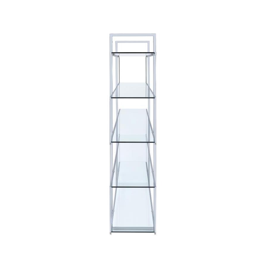 • Beautifully polished electroplated chrome frame with clear tempered glass shelves