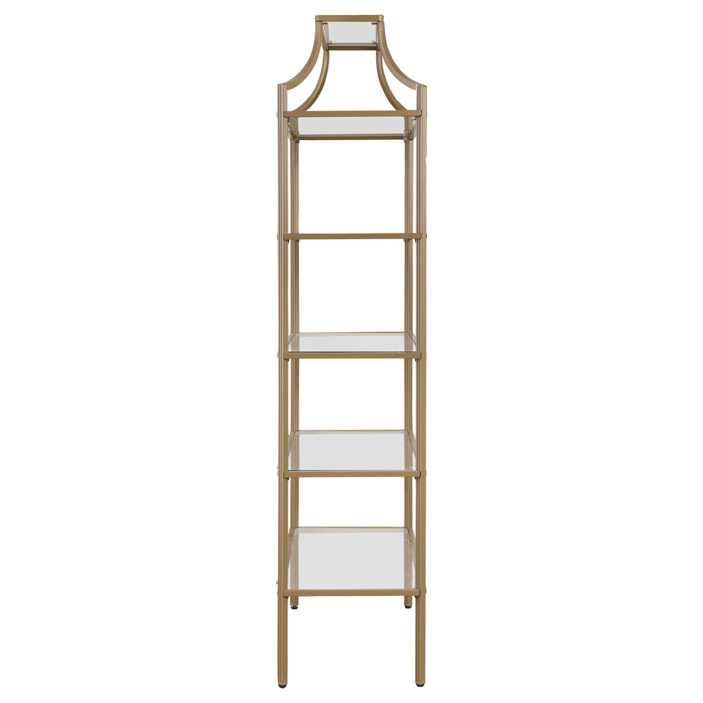 • Five (5) tiers shelving to show off framed family photos, favorite books, and artful accents