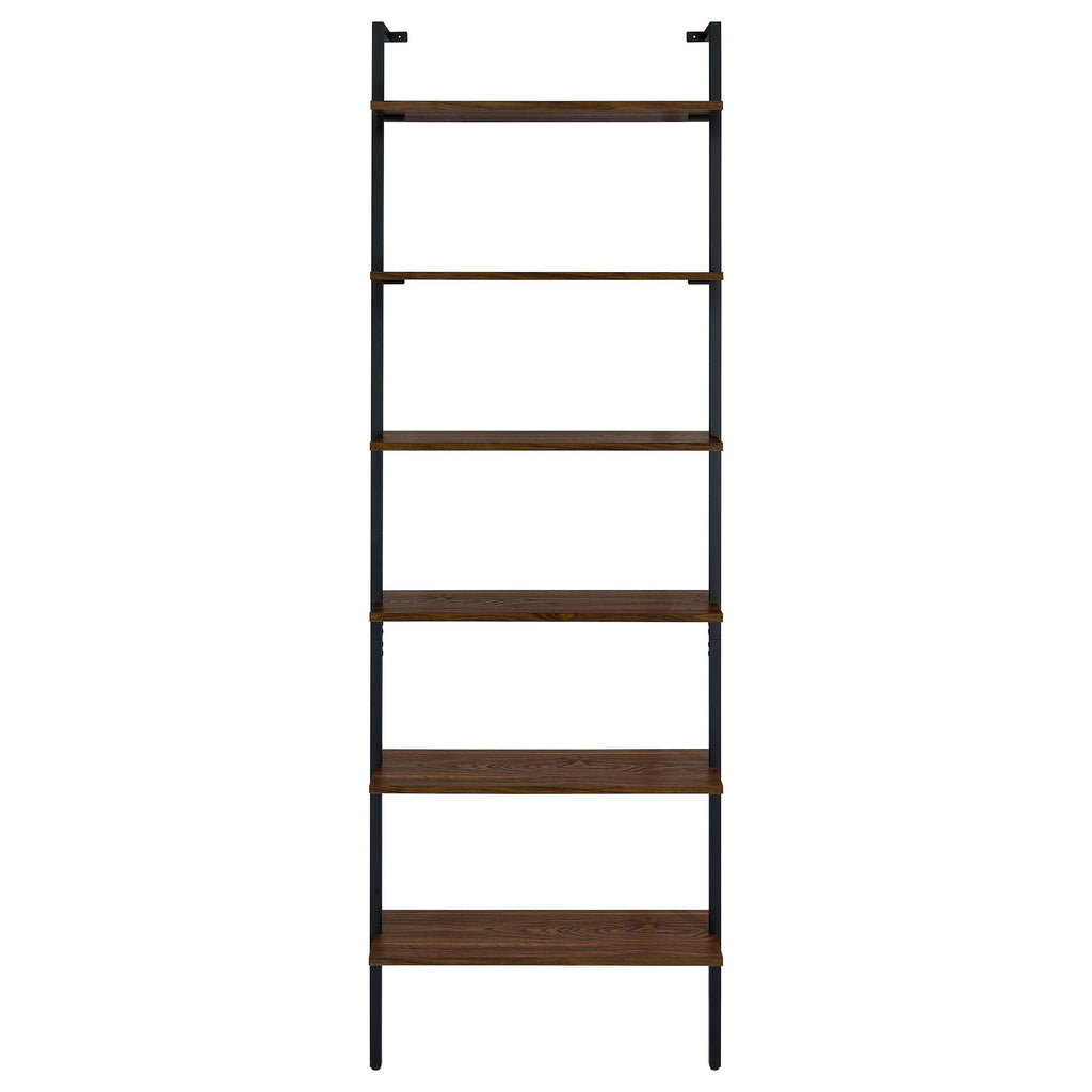 • Achieve a minimalist look with the open, airy style of a modern six-shelf wall bookcase