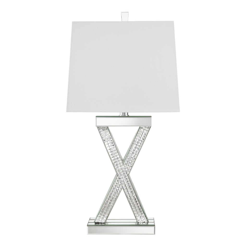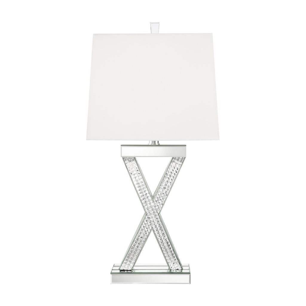 • Rectangular shade in white complements the shiny, reflective finish