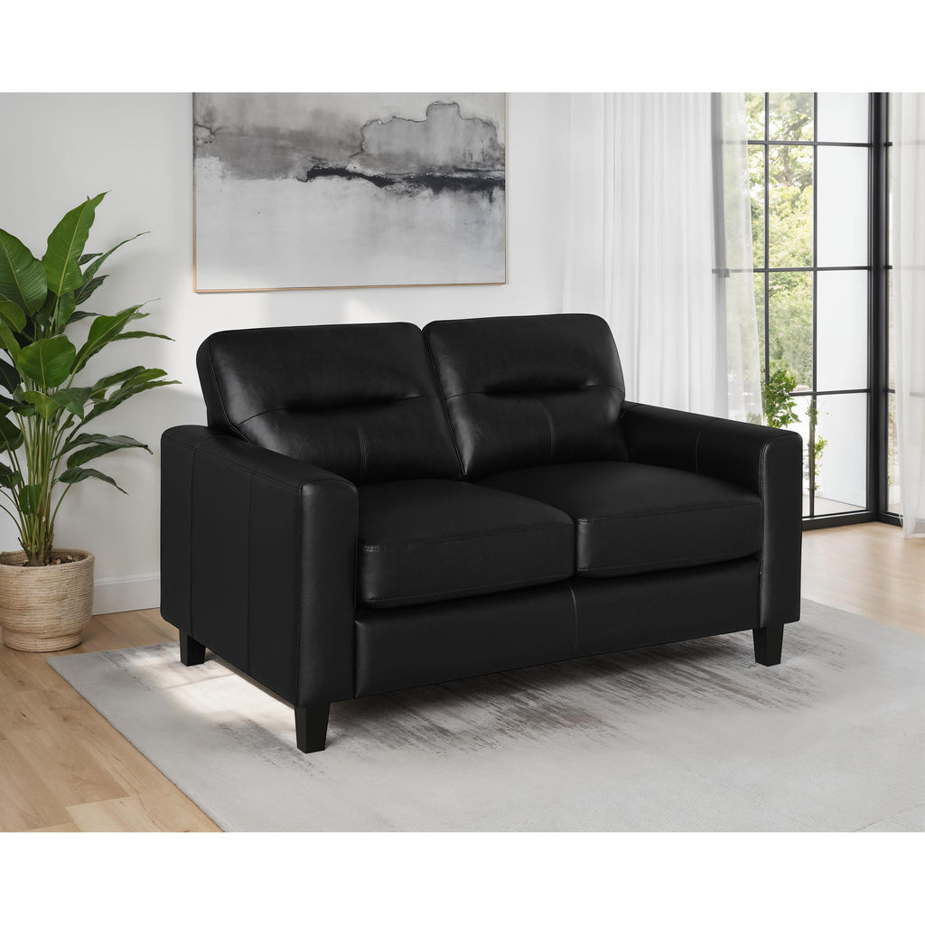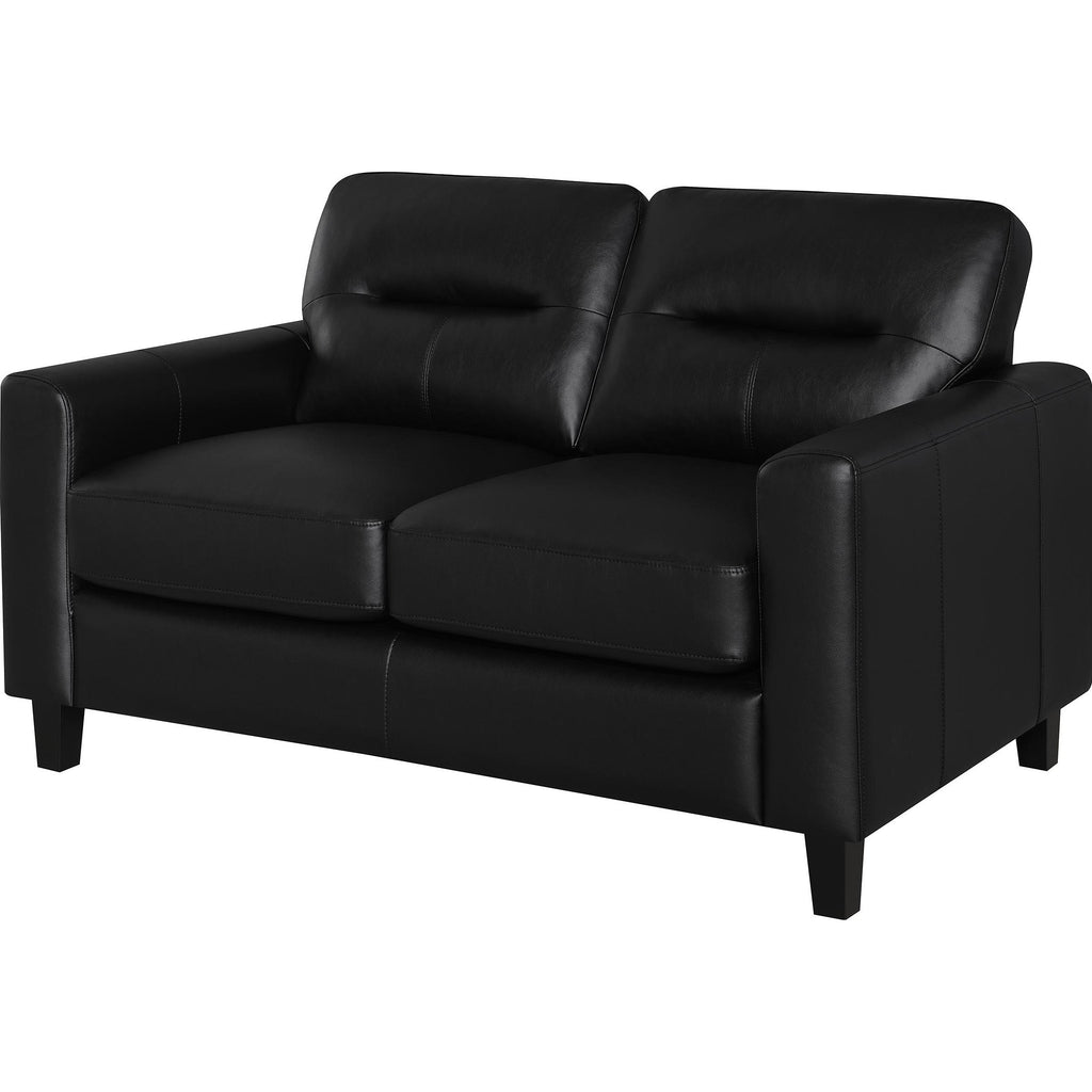 • Crafted from pine, plywood, foam, and leatherette upholstery throughout