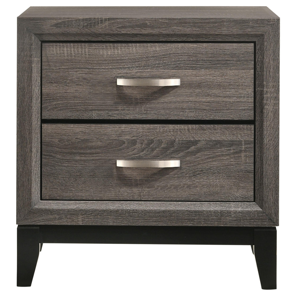 • Nickel finished hardware highlights two-tone grey oak finish