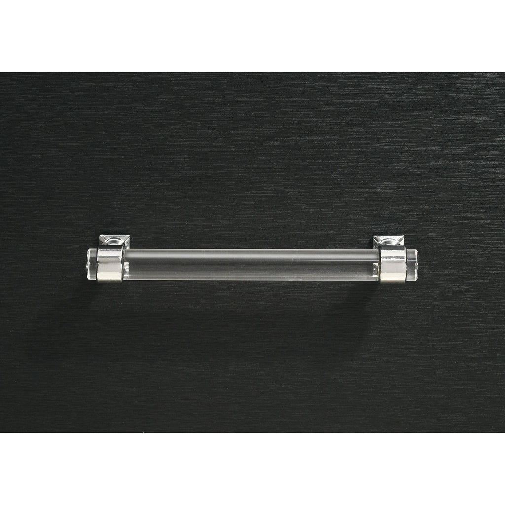 • Cool gleaming chrome finish trim highlights the front of the case, long bar pulls and decorative legs
