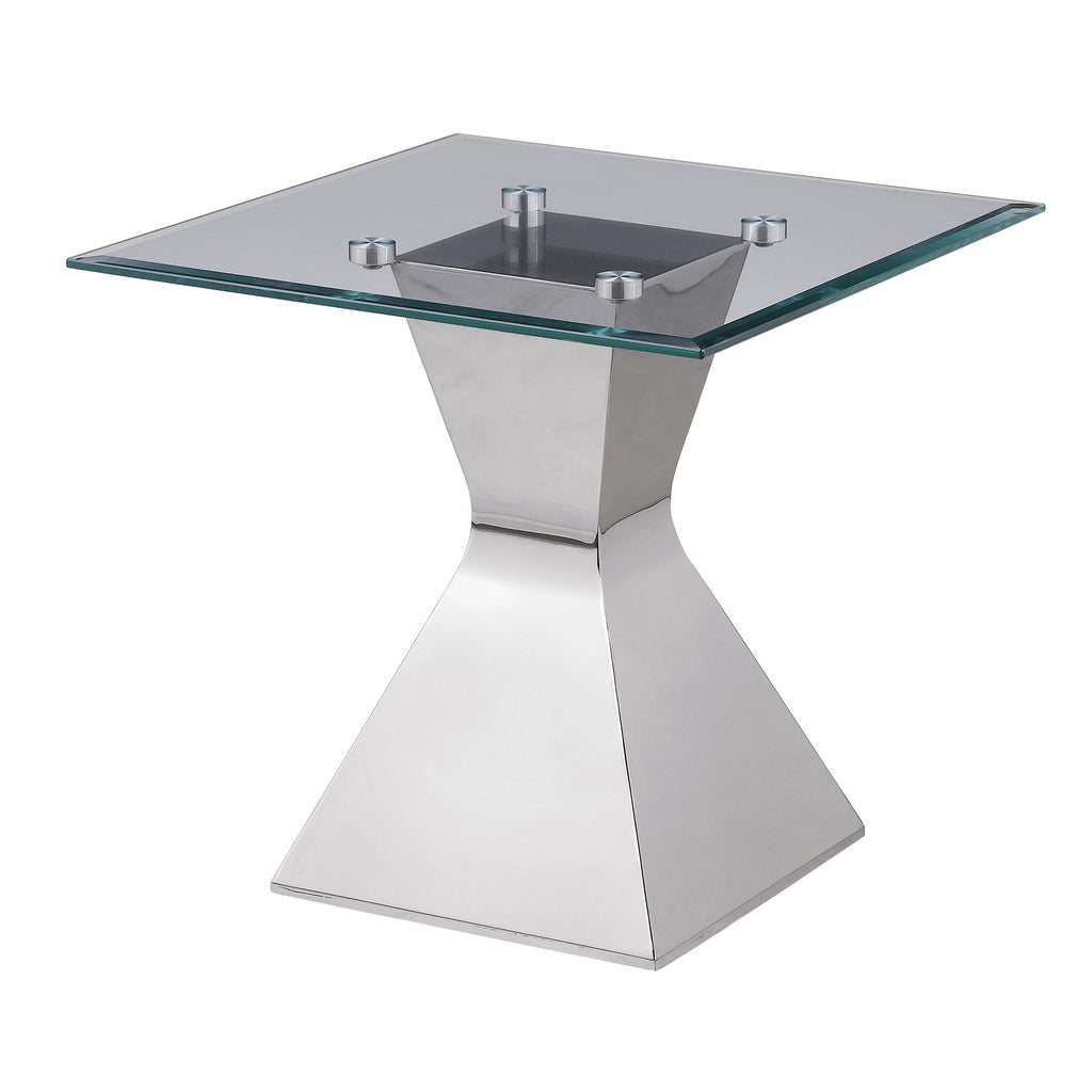 • Square glass tabletop is light and airy, with a beveled edge for dimension