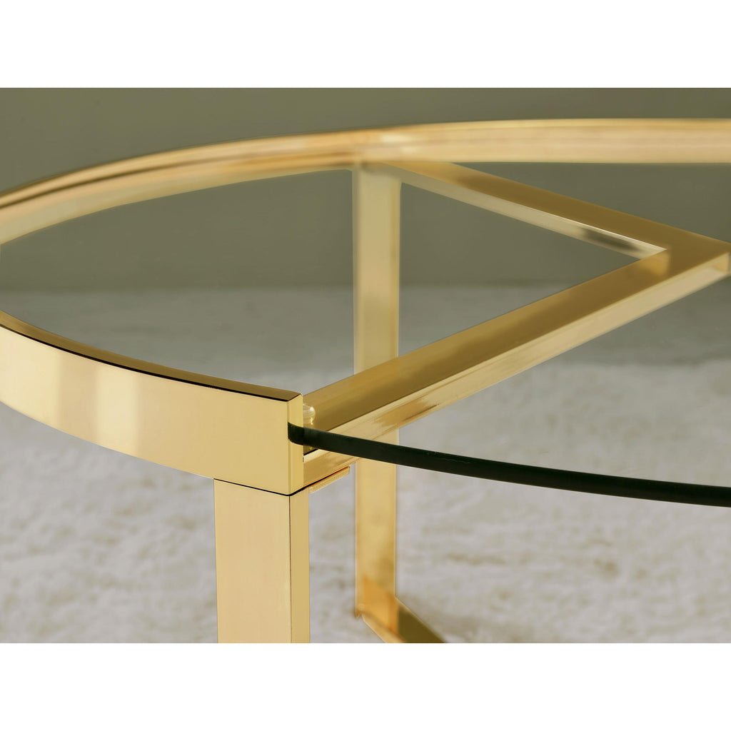 • Nesting coffee table with clear tempered glass tops and gold electroplated metal base