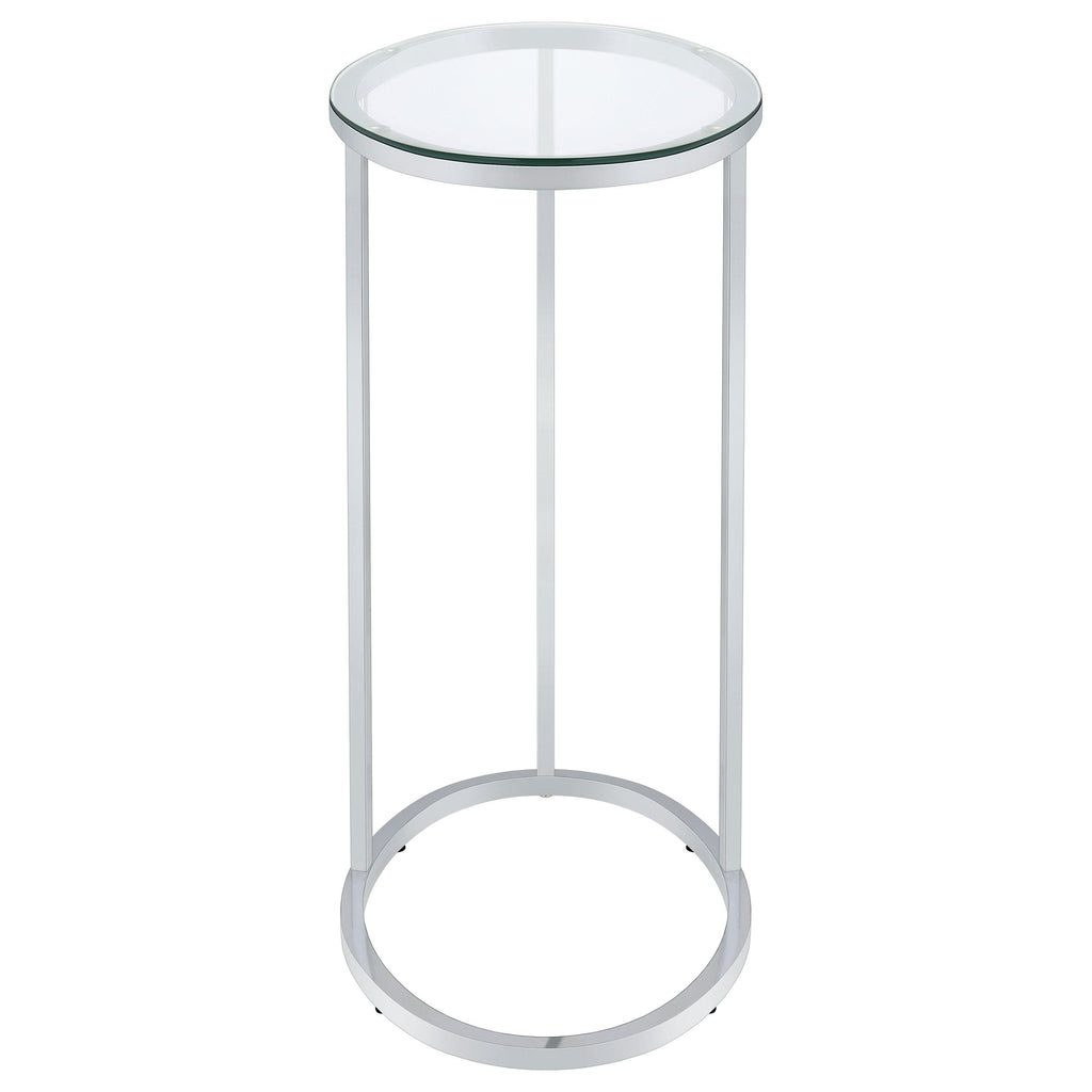 • Oval side table with a clear tempered glass top for a sleek, durable surface