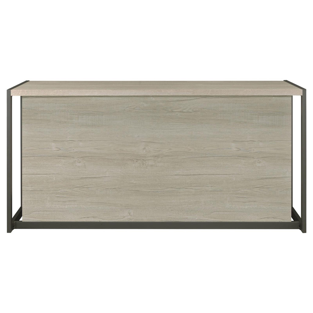 • Whitewashed grey finish creates a clean, contemporary feel