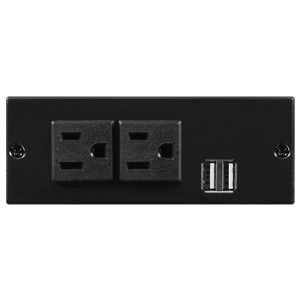 • Console features soft-closing lift top storage with power outlet (2AC/2USB) and two cup holders with removable stainless steel inserts