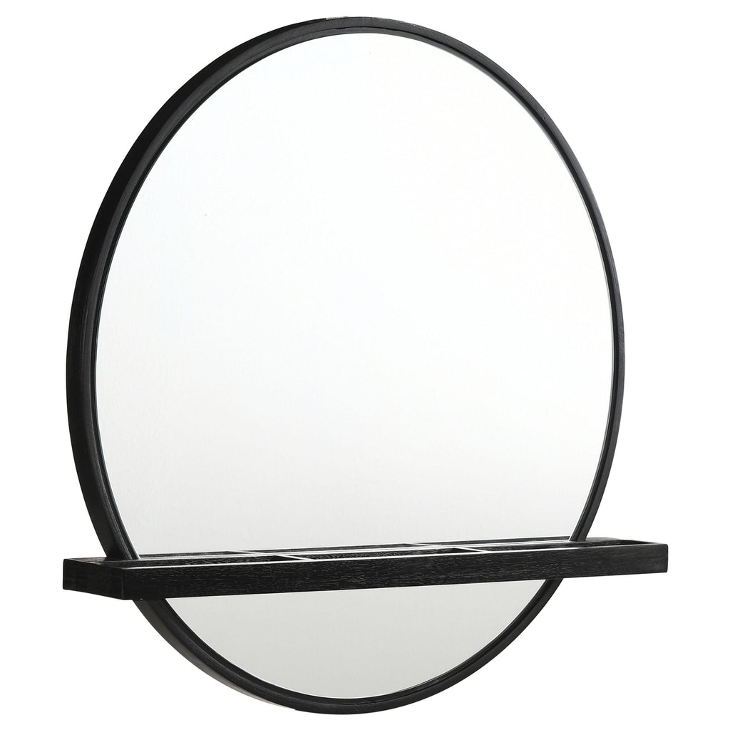 • Round wall mirror is perfect for a vanity, offering additional storage for small items